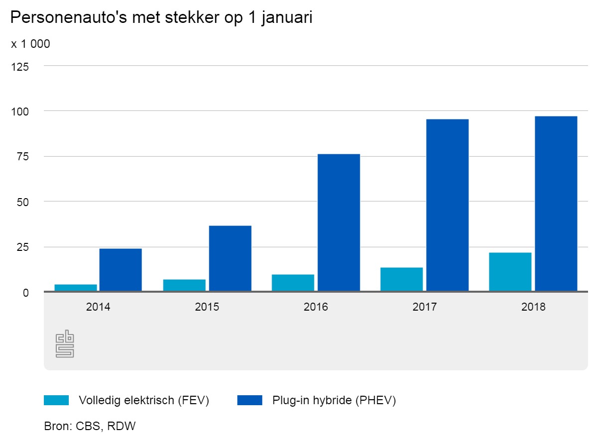 Op 1 januari van dit jaar steeg het aantal hybride auto's naar bijna 97 duizend. Een hybride auto rijdt deels op brandstof en deels op elektriciteit. Het aantal volledig elektrisch aangedreven voertuigen liep op tot bijna 22 duizend. Daarmee rijden er dit jaar in totaal bijna 120 duizend zogenaamde stekkerauto's rond. Dat aantal is ons land nog nooit zo hoog geweest. Ondanks de stijging van deze elektrische voertuigen is het aandeel van elektrische auto's op het hele Nederlandse personenautopark slechts 1,4 procent. Verreweg het grootste deel rijdt dus nog in een auto die volledig rijdt op brandstof. De verwachting voor de komende jaren is dat het aantal consumenten dat elektrisch rijdt, alleen maar zal toenemen.